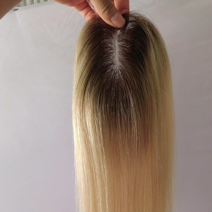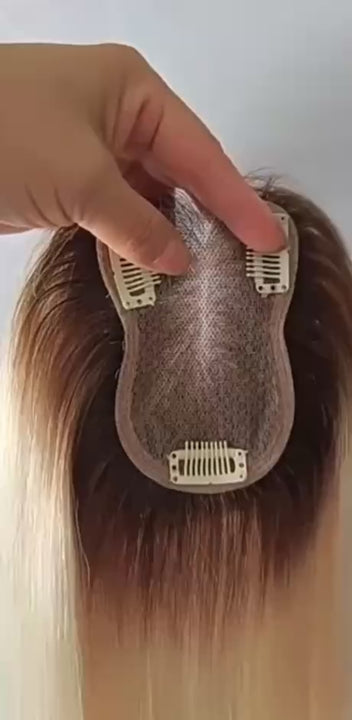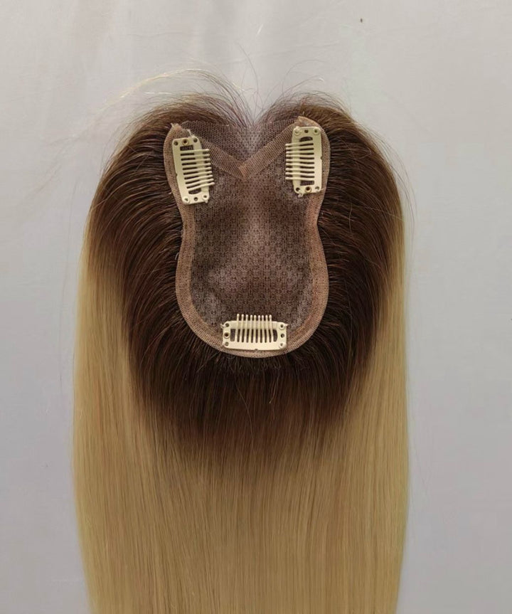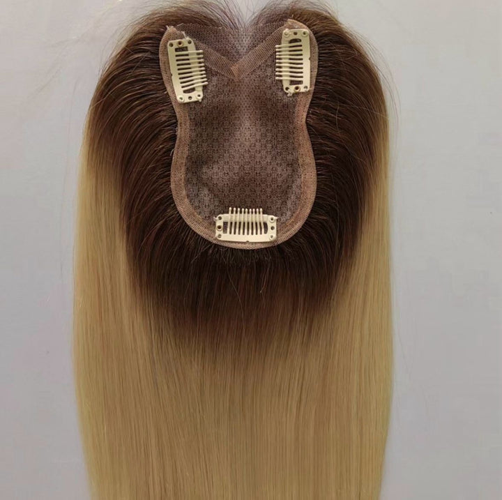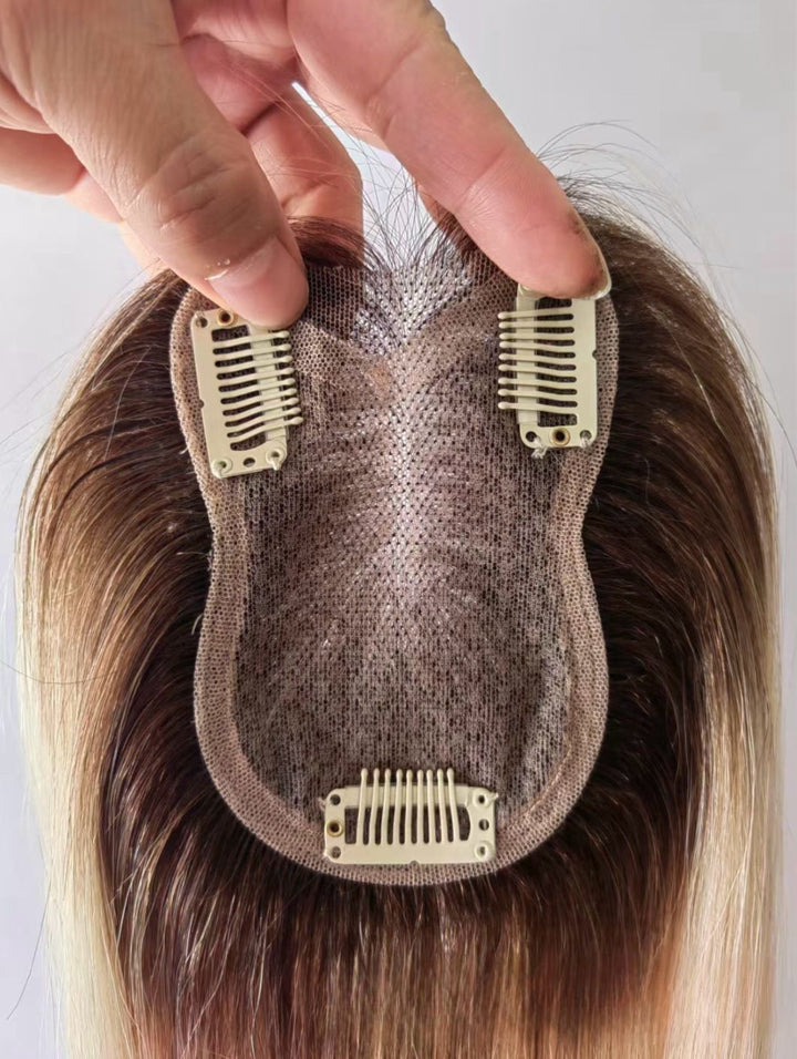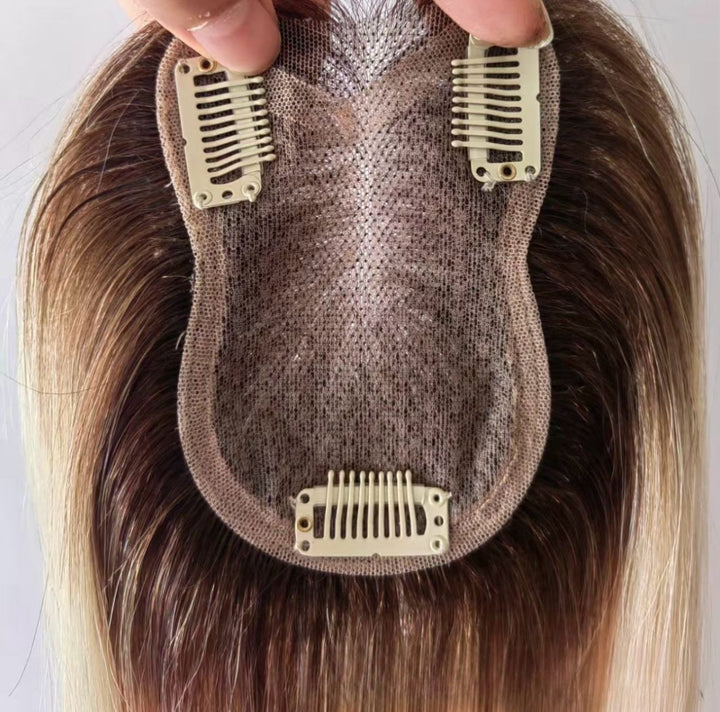 10 Days Customization: 3.15"x4.3" Lace Brown 100% Human Hair Topper Clip in 12"