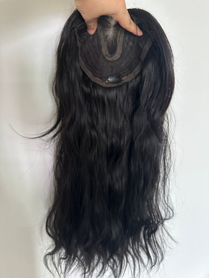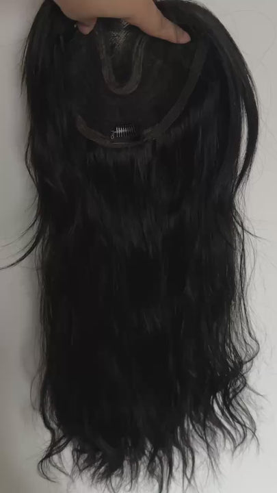 16cmx16cm Lace Frontal Water Wave Synthetic Hair Topper for Women Clip in 55cm