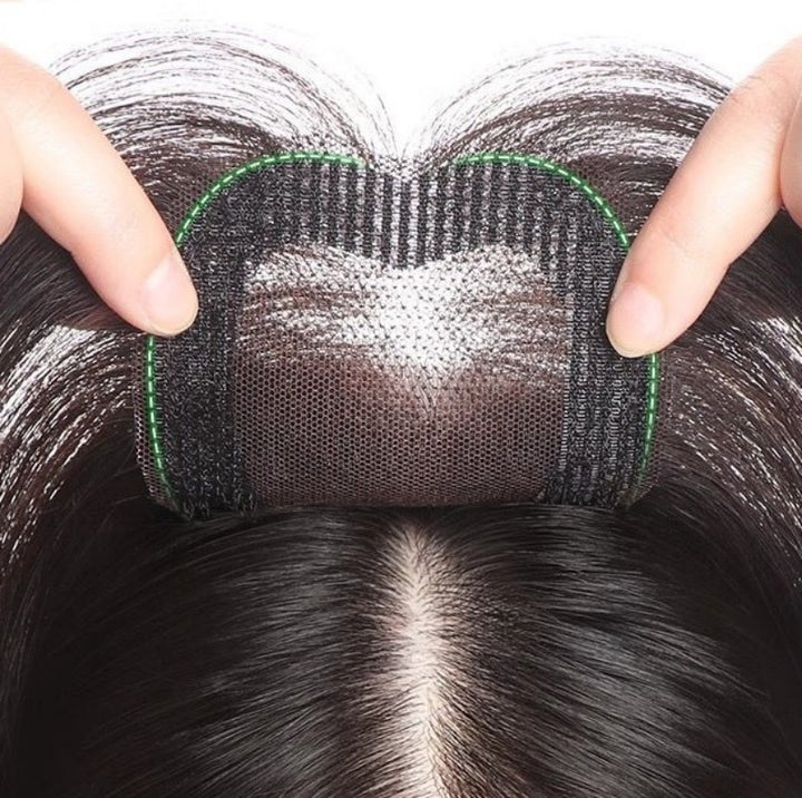2.3"x3.15"(6cmx8cm) No Clips/Tapes Friction to fix 100% Human Hair Hairline Topper 10"