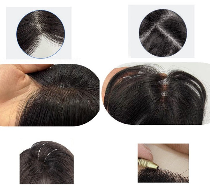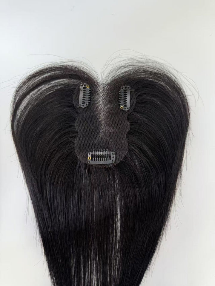 2.75"x4"Super Thin Breathable Lace 100% Human Hair Topper Wiglet Clip in 12"