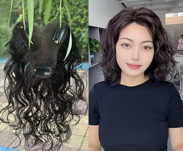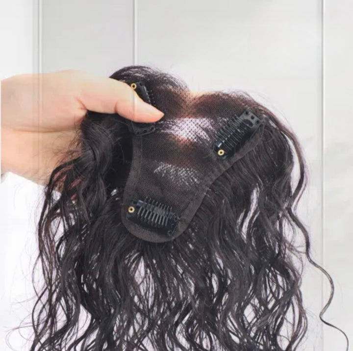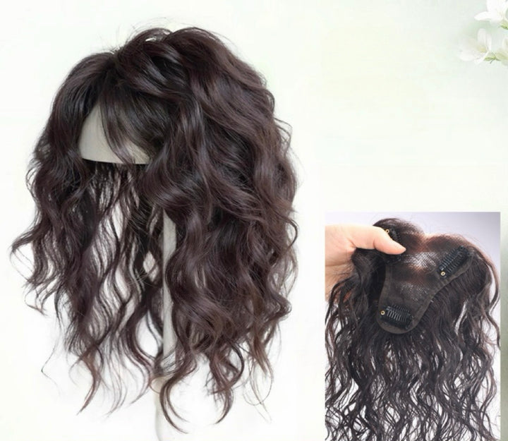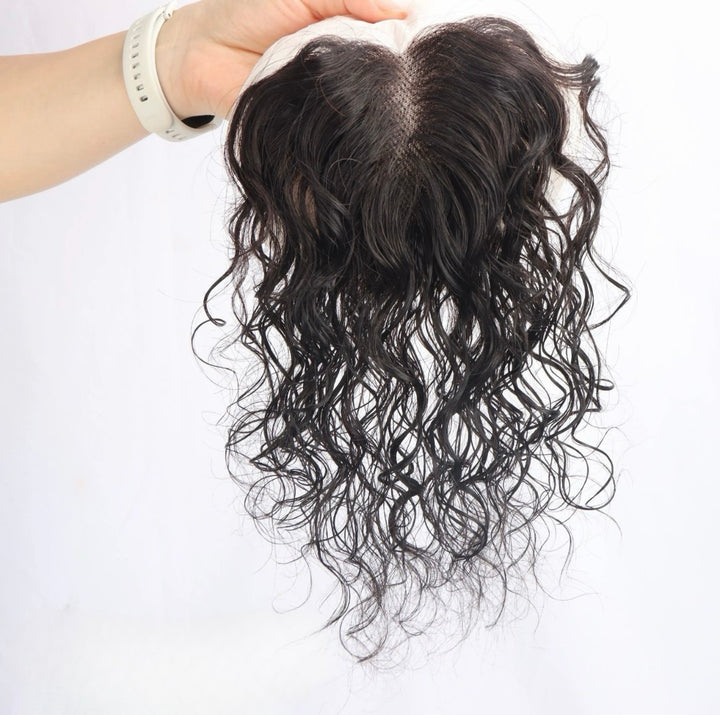 3.5"x4"Seamless Lace Wavy 100% Human Hair Hairline Head Top Topper Clip in 10"