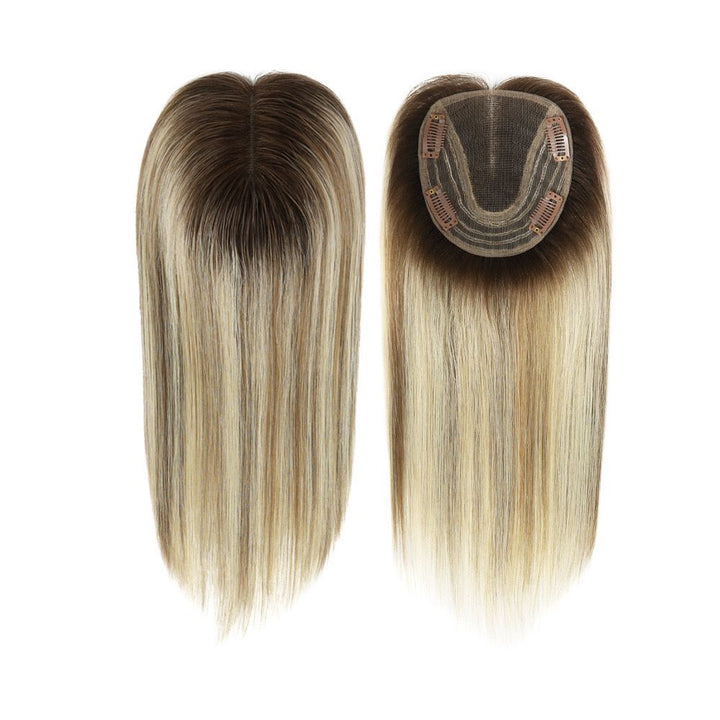 4.5"x5"Hand Crocheted Parting 100% Human Hair Topper Clip in 12", Multi-Colors