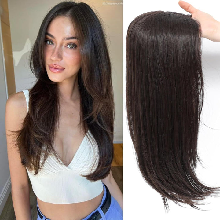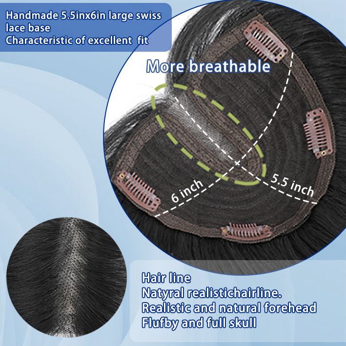 5.5"x6" Seamless Front Lace Heat Resistant Synthetic Hair Topper for Women Clip in 20"